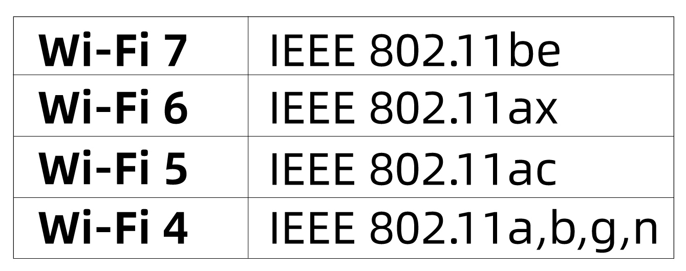 - Wi-Fi follows the IEEE 802.11 standard.The Wi-Fi Alliance uses simplified generational names for Wi-Fi. The technical standards (supporting technologies) corresponding to Wi-Fi 4 through Wi-Fi 7 are listed below: