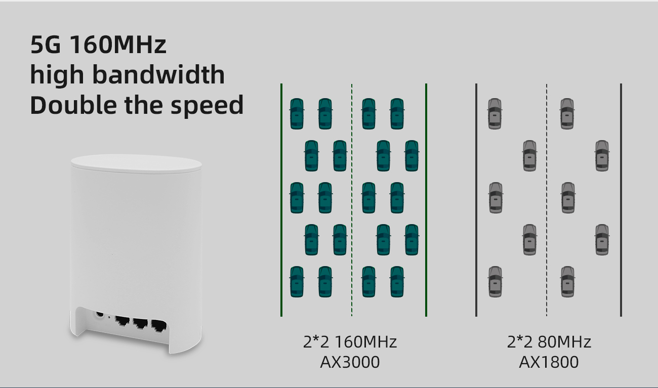 Backhaul Link Speed: 5G 2402Mbps + 2.4G 574Mbps